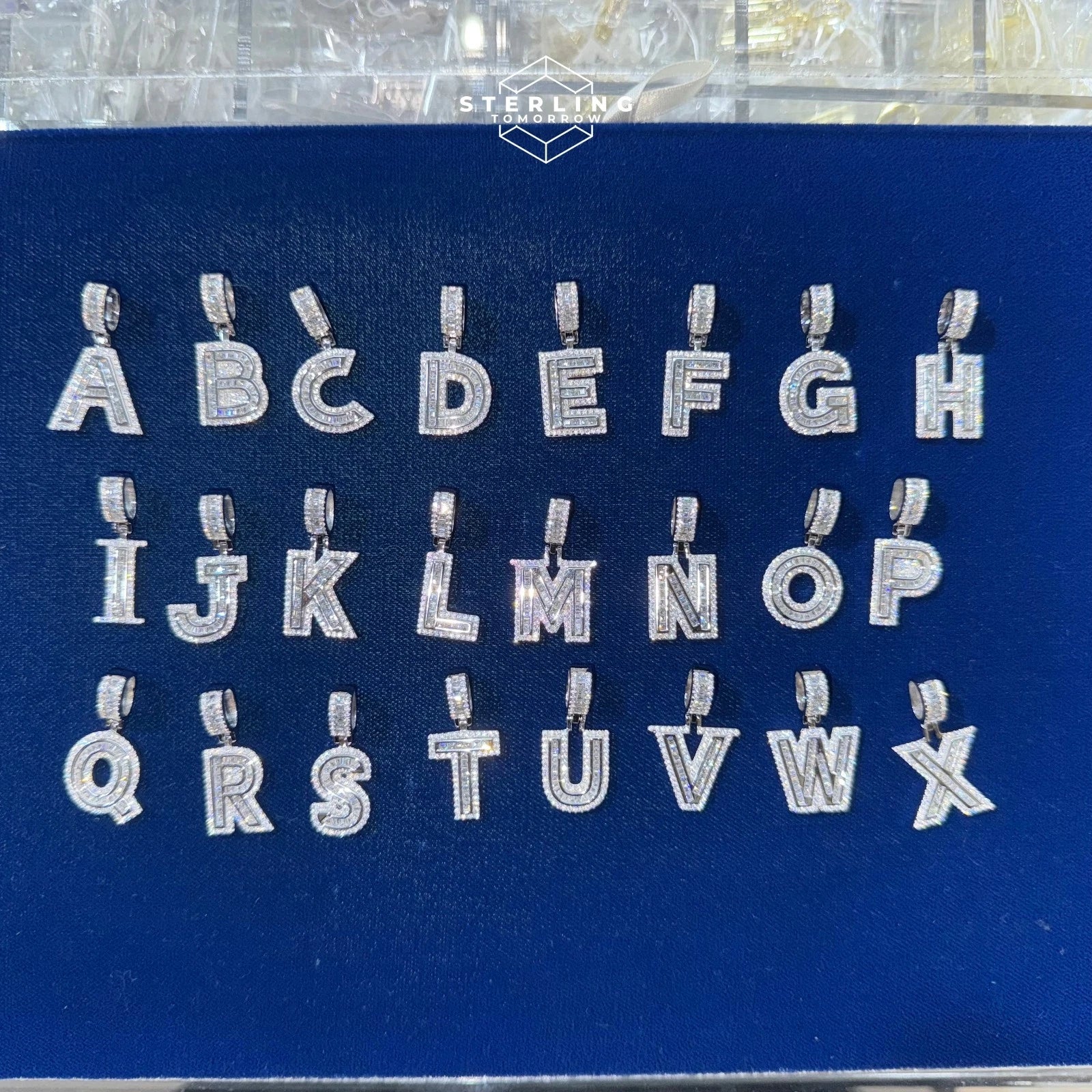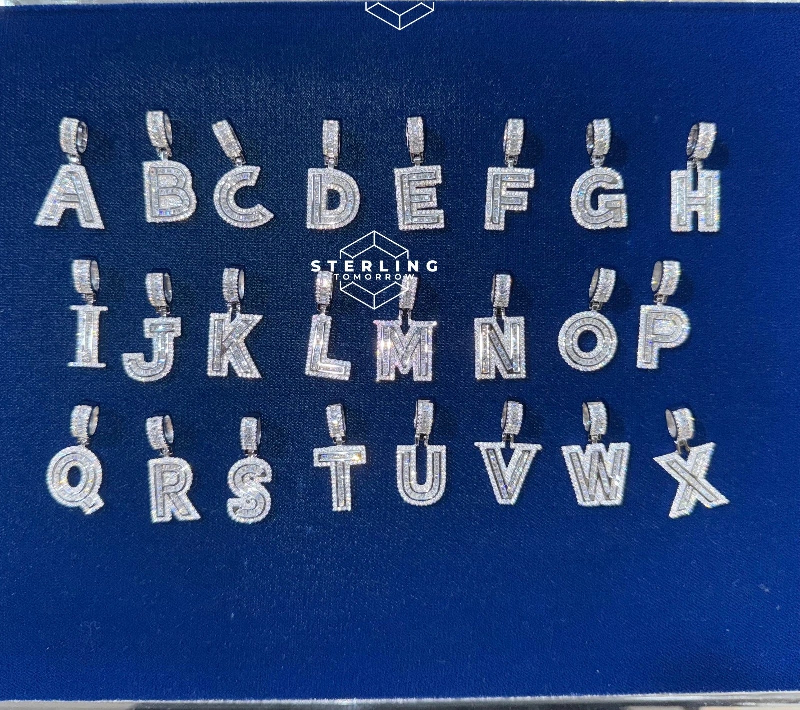 Make your jewelry truly personal with our 925 silver initial letter pendants, adorned with dazzling baguette CZ diamonds! Each A-Z letter charm is expertly crafted from genuine sterling silver and finished with brilliant cubic zirconia stones, creating a unique and eye-catching piece.