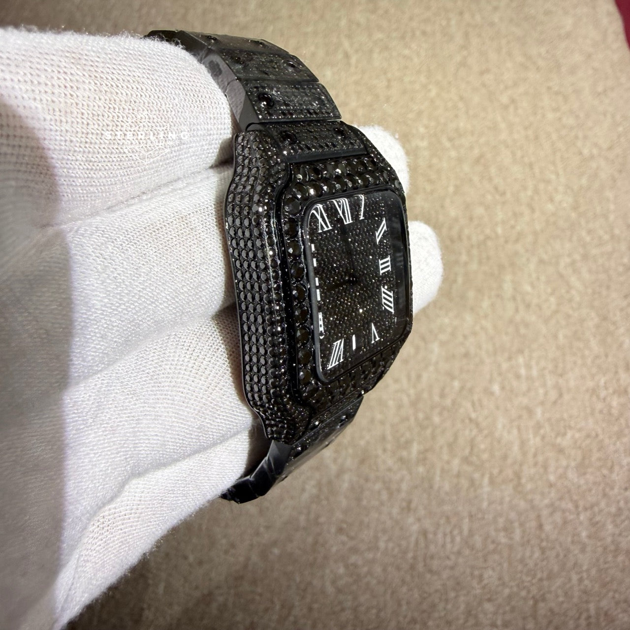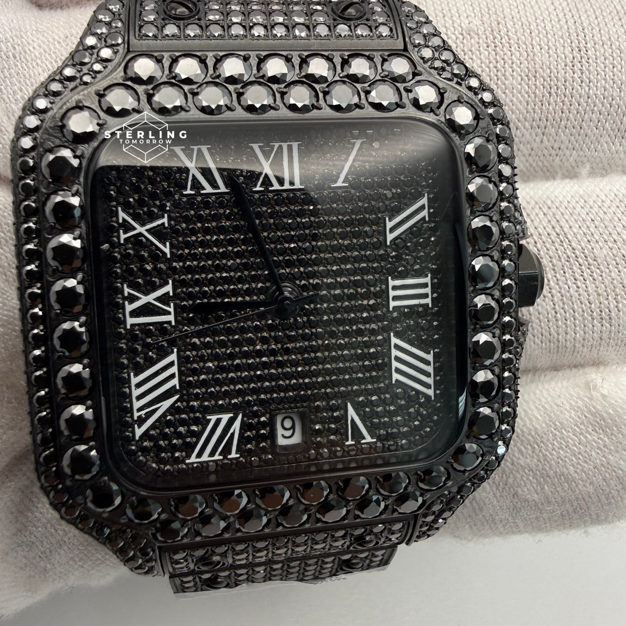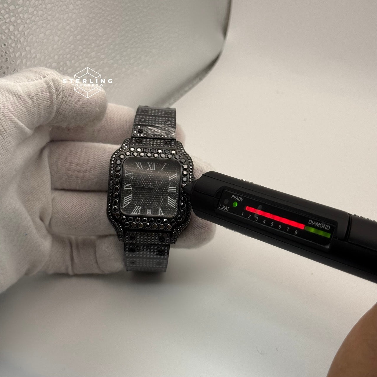 Elevate your style with this Black 40mm men’s moissanite watch, crafted with premium stainless steel and set with VVS-grade moissanite stones that pass diamond testers for brilliant sparkle and authenticity. This luxury-style wristwatch is perfect for men who want a bold, high-end look without the luxury markup. Each stone is carefully hand-set, ensuring maximum shine and durability.