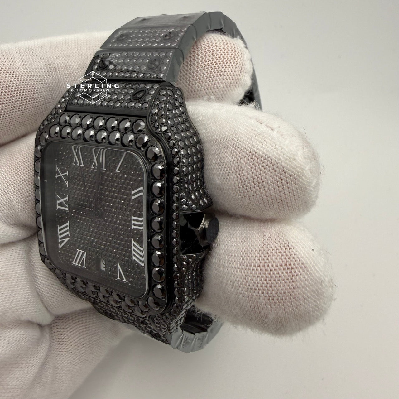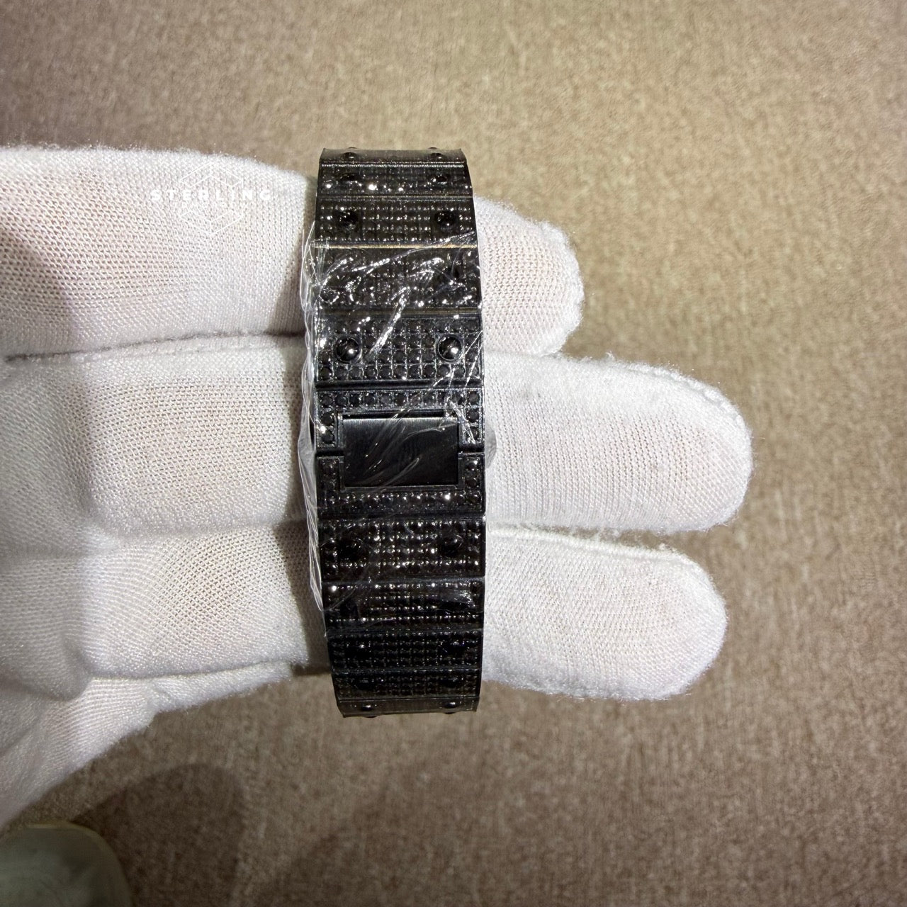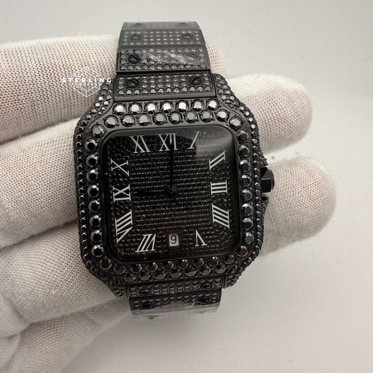 Elevate your style with this Black 40mm men’s moissanite watch, crafted with premium stainless steel and set with VVS-grade moissanite stones that pass diamond testers for brilliant sparkle and authenticity. This luxury-style wristwatch is perfect for men who want a bold, high-end look without the luxury markup. Each stone is carefully hand-set, ensuring maximum shine and durability.
