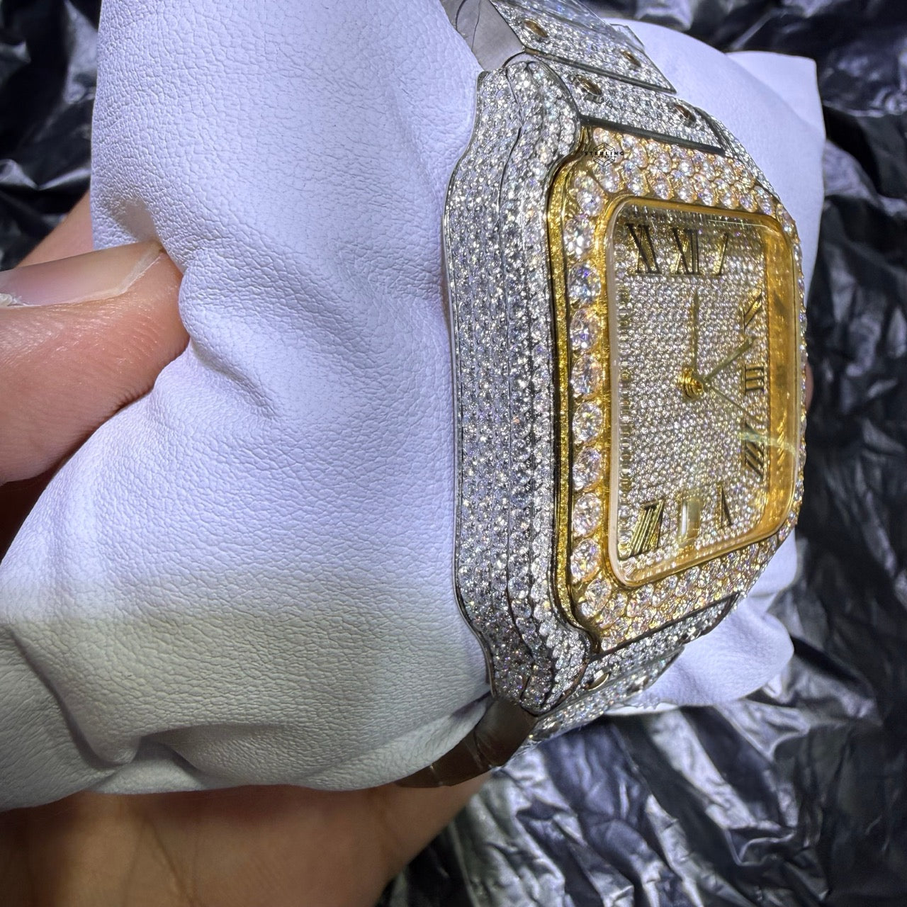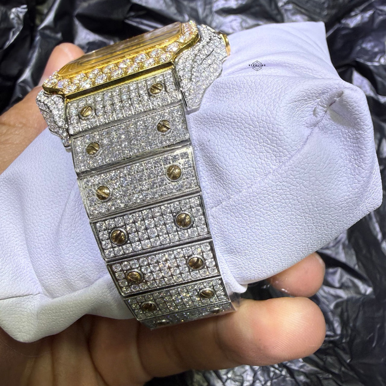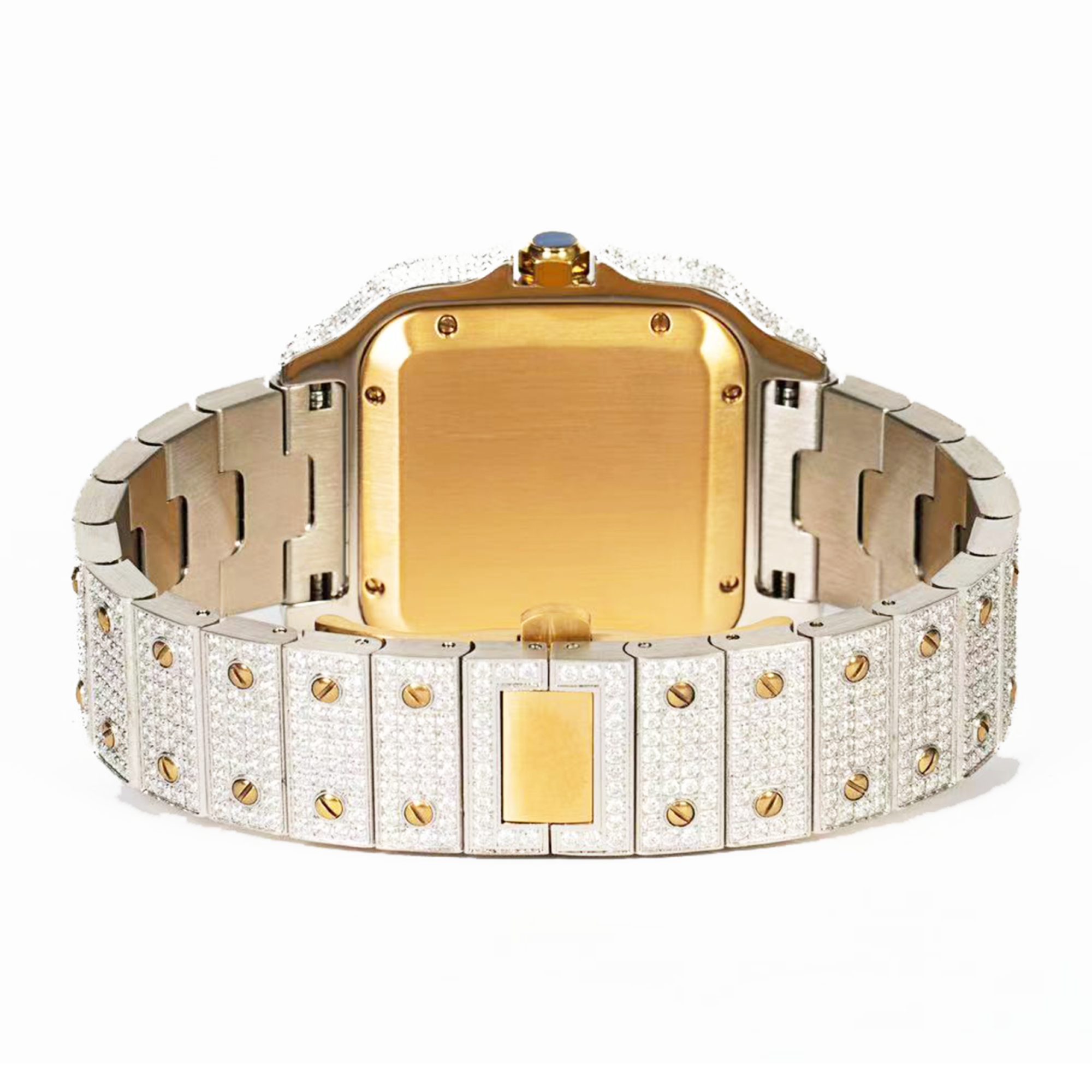 Shine like a star with this Moissanite Two-Tone Stainless Steel Watch, expertly crafted for those who appreciate luxury style, precision, and brilliance. The 40mm stainless steel case with a stunning yellow gold and silver finish brings the perfect mix of sophistication and street-luxury design.