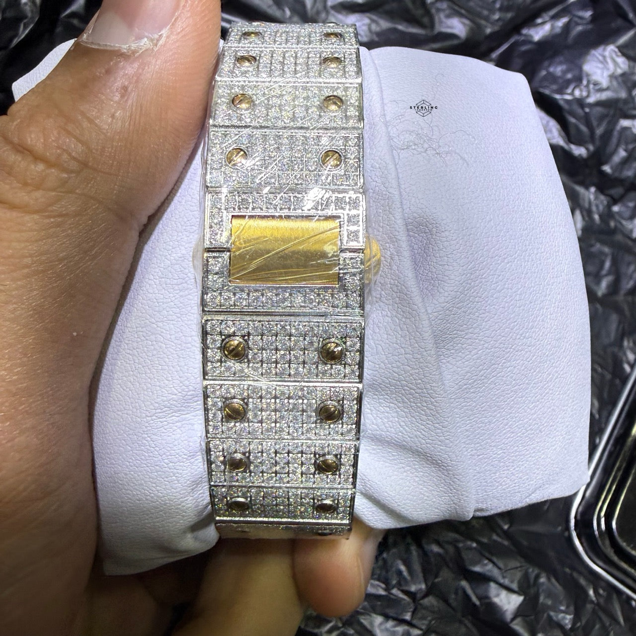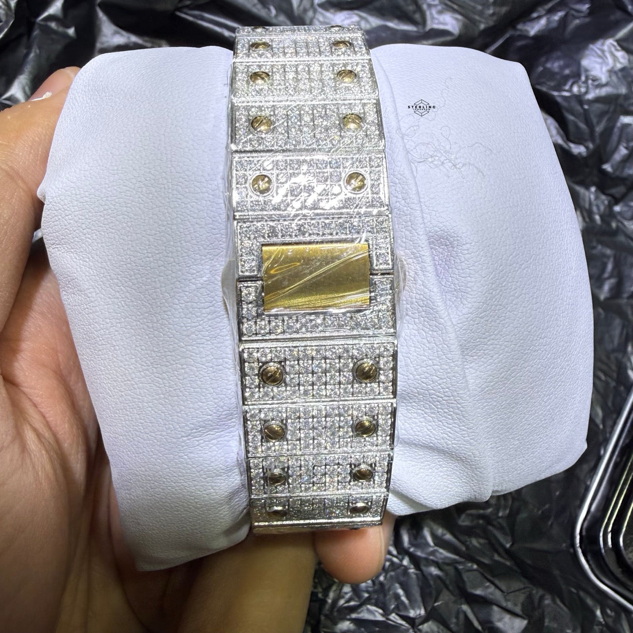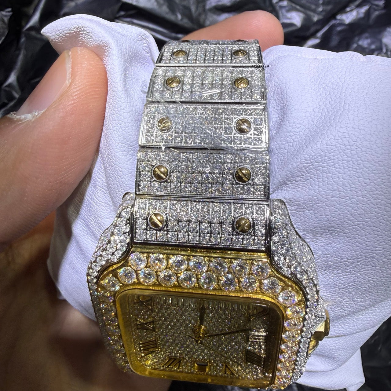 Shine like a star with this Moissanite Two-Tone Stainless Steel Watch, expertly crafted for those who appreciate luxury style, precision, and brilliance. The 40mm stainless steel case with a stunning yellow gold and silver finish brings the perfect mix of sophistication and street-luxury design.