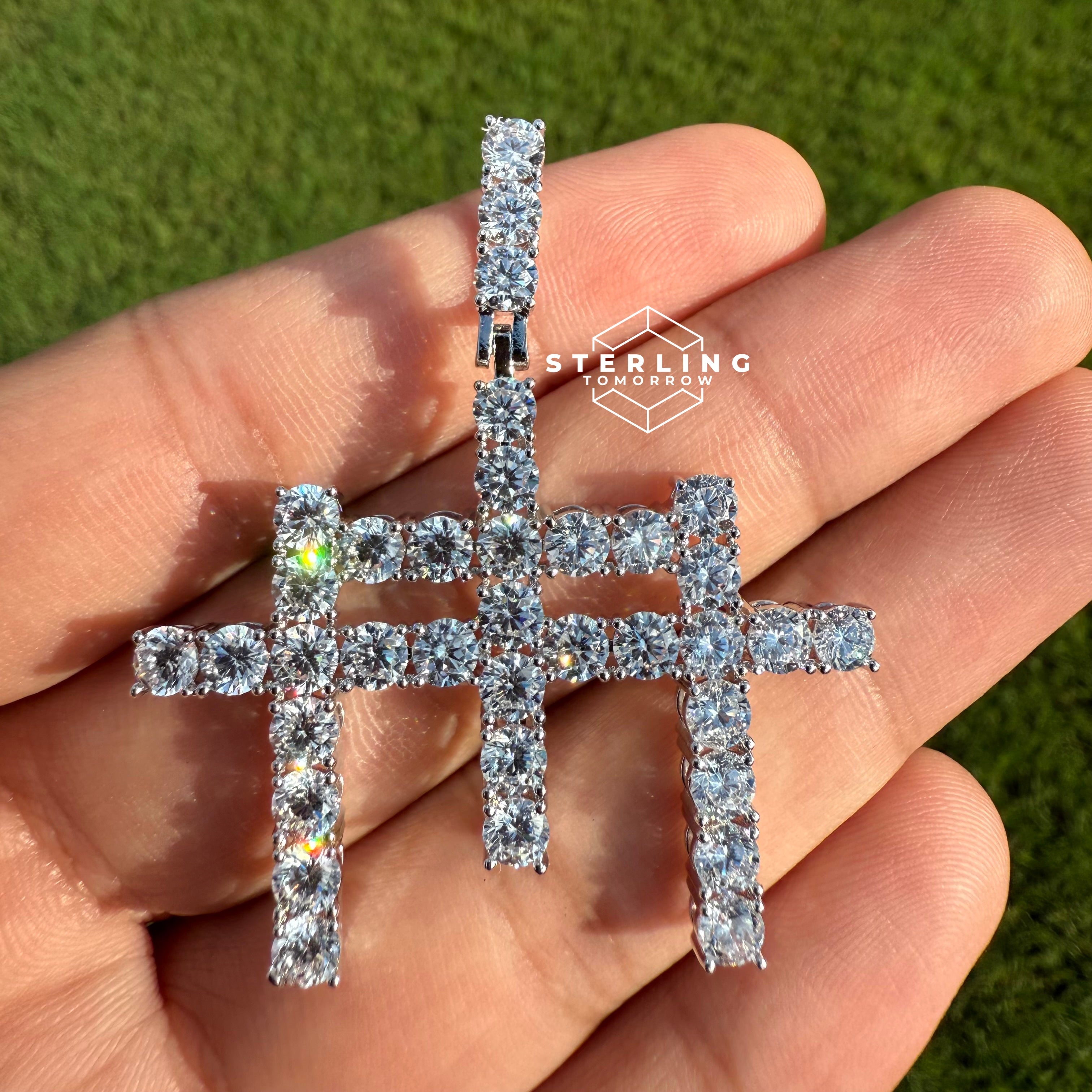 This bold iced out pendant features a modern triple-cross design, fully encrusted with dazzling cubic zirconia (CZ) diamonds for maximum sparkle. Inspired by hip hop and urban fashion, it’s the perfect bling accessory to elevate your style or make a thoughtful gift.